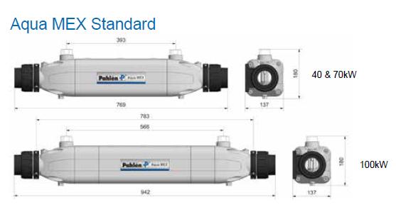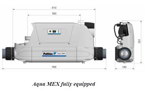 • Aqua MEX được trang bị đầy đủ với công tắc dòng chảy, van kiểm tra, cảm biến nhiệt độ, bơm tuần hoàn ba pha và thiết bị điện tử