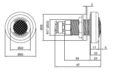 Phía trước được làm bằng thép không gỉ chống AISI 316L, với vỏ bọc bằng đồng thau chromal. Phù hợp với tất cả các loại bể bơi..
