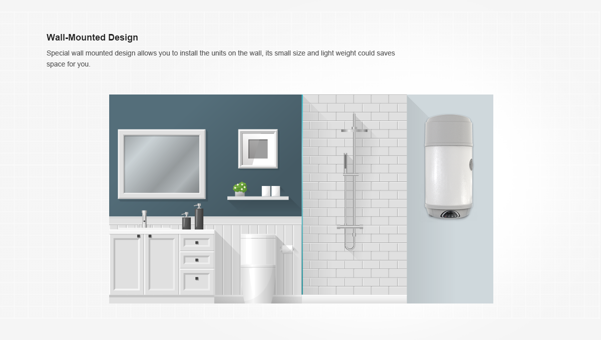 Với thiết kế gắn trên tường, nó sẽ là sản phẩm thích hợp cho những căn hộ có không gian nhỏ hẹp. Ngoài ra, với kích thước nhỏ, trọng lượng nhẹ, nó sẽ giúp tiết kiệm không gian sống của bạn..