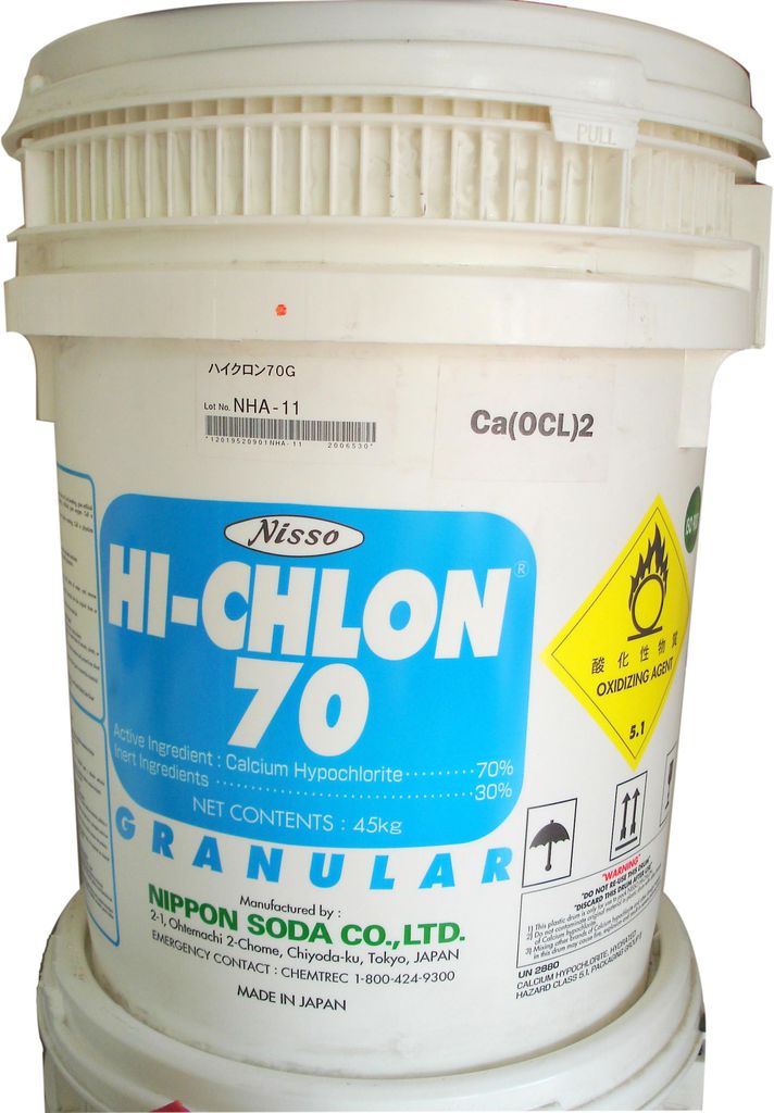 – Công dụng: Công dụng chính của Chlorine Nippon 70% là làm trong nước bể bơi, diệt khuẩn, diệt vi trùng , ngăn ngừa rong rêu. Chlorine Nippon 70% còn có tác dụng phụ là hạ nồng độ PH , cho nên trước khi bỏ CHLORINE ta phải kiểm tra nồng độ PH 7.2-7.6 , nếu nồng độ PH trong nước thấp dưới mức 6.8 sẽ làm giảm hiệu quả nồng độ của CHLORINE vì nồng độ AXIT tạp trong nước cao hút oxigen trong nước làm giảm tác dụng của clo.